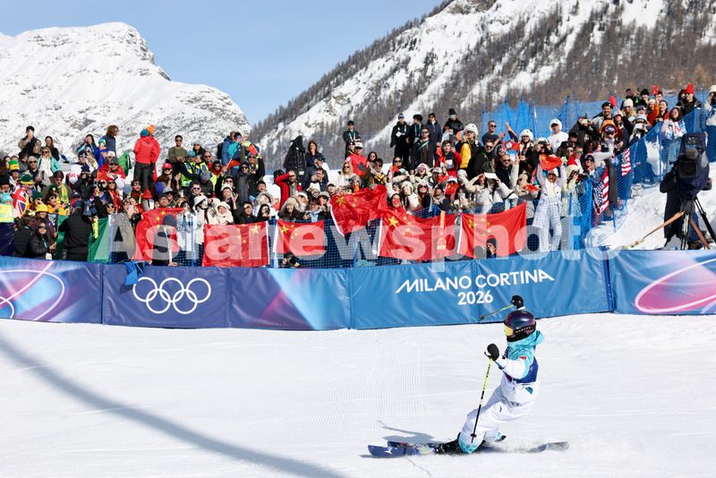 Caption:Li Fanghui of China competes during the women's freeski halfpipe final at Milan-Cortina 2026 Winter Olympics at the Livigno Snow Park in Italy on February 22, 2026.