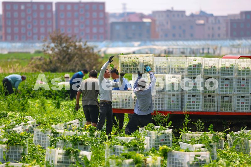 Farmers are busy gathering celery in the fields in Chengban village, Fuqing, Fujian province, March 29, 2026. In recent years, Fuqing City has leveraged its distinctive vegetable industry to integrate green, pollution-free farming bases for crops like celery, cauliflower, and fava beans with leisure tourism and agricultural experiences. This has resulted in the development of agritourism routes combining hands-on harvesting, ecological sightseeing, and rural cuisine. By transforming villages into scenic spots and farmlands into parks, the city has fostered a symbiotic relationship between agriculture and tourism, painting a fresh canvas of rural revitalization.